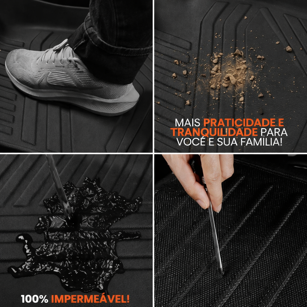 Totalmente impermeável, protege o assoalho contra líquidos e sujeira, mantendo o carro sempre limpo.