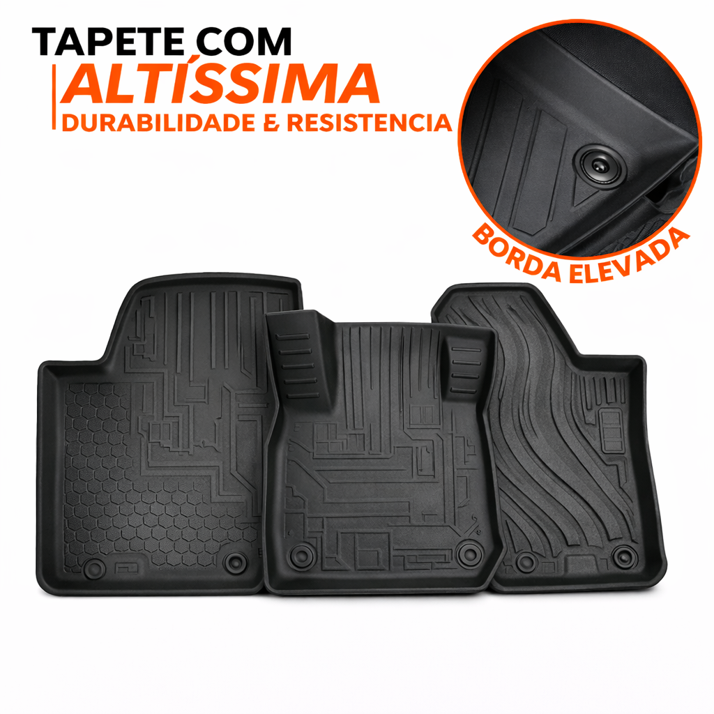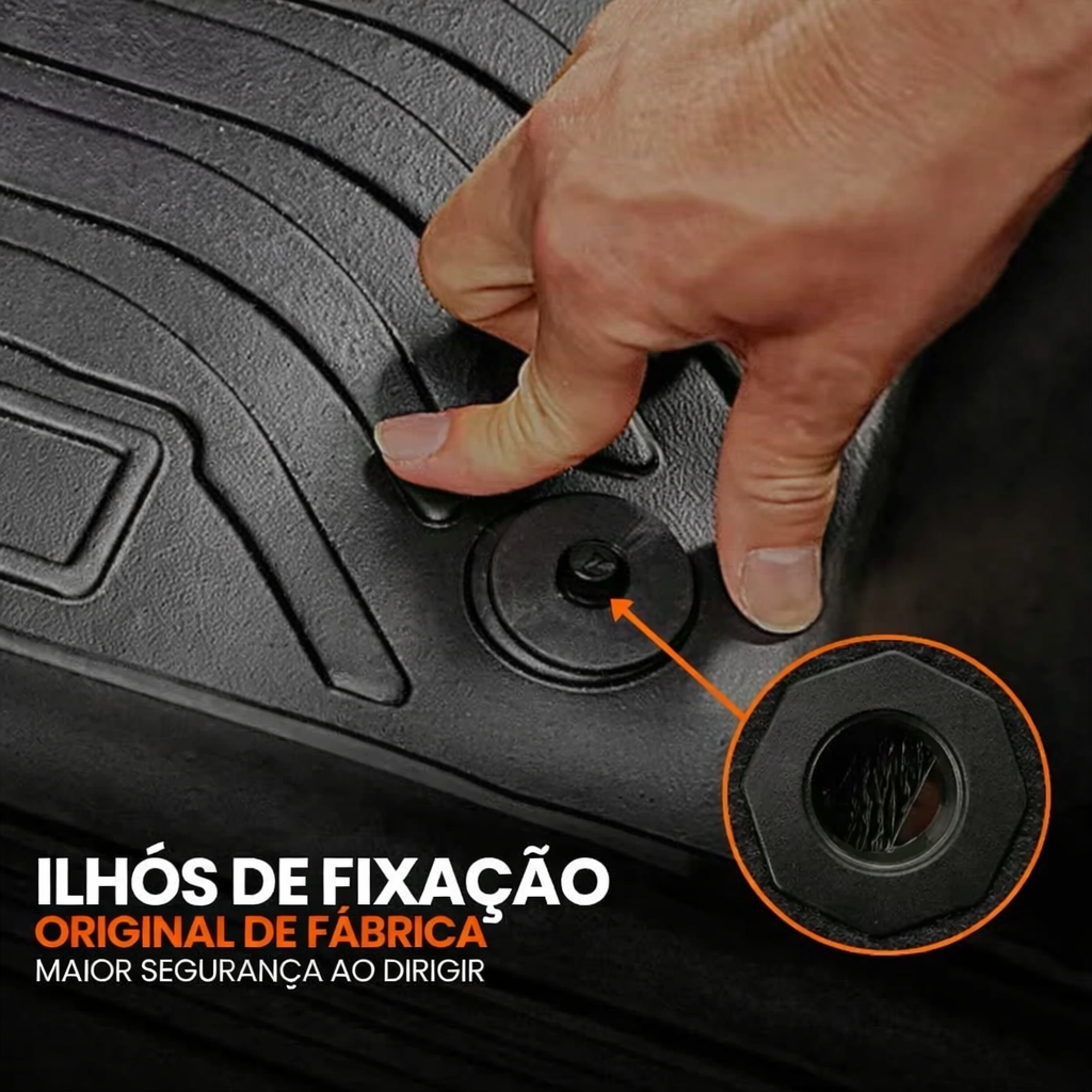 Totalmente impermeável, protege o assoalho contra líquidos e sujeira, mantendo o carro sempre limpo.